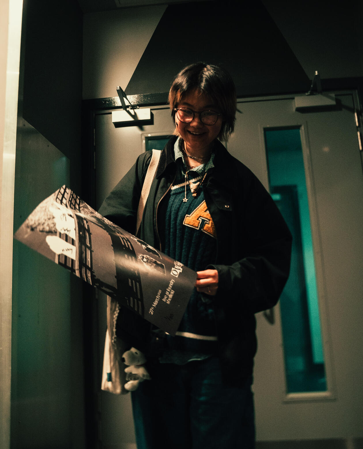 A photo of them holding the poster they designed for overpass (credit to @lilonfilmm)